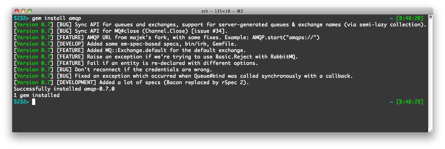 When you install the AMQP gem, you'll see changes of the current version. (How did I do that? With changelog gem and a bit of gemspec magic.)